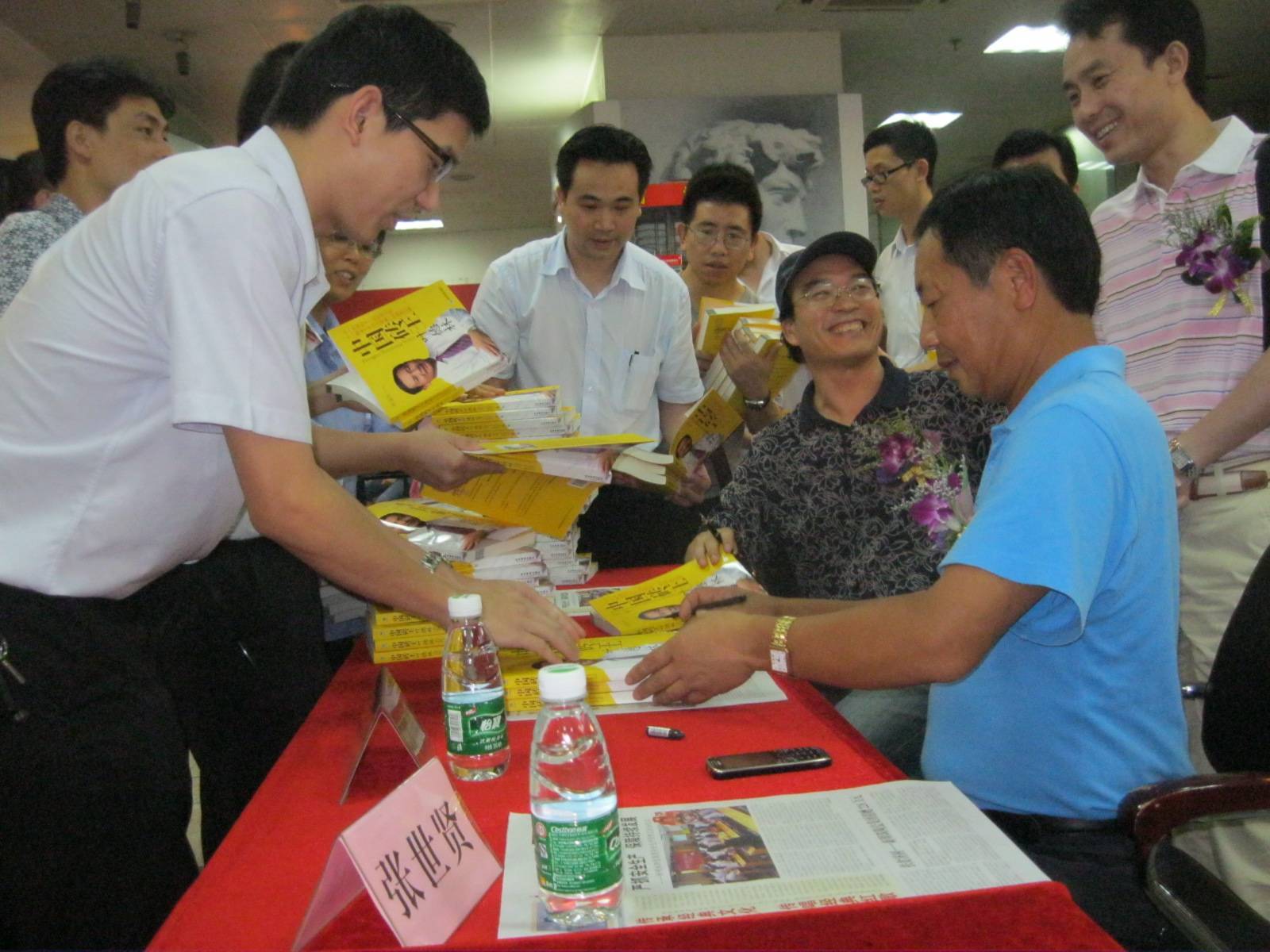 《中国砖王叶德林》 签售暨读者见面会,叶德林(中)、黄康俊(右四)经济管理出版社长张世贤(左四)出版社主任勇生(右三)